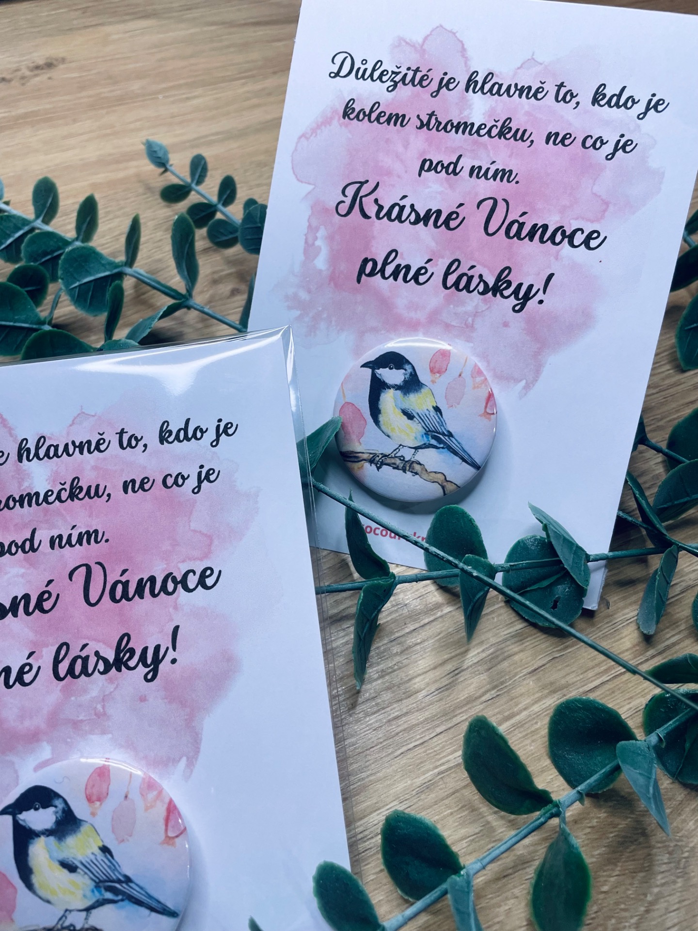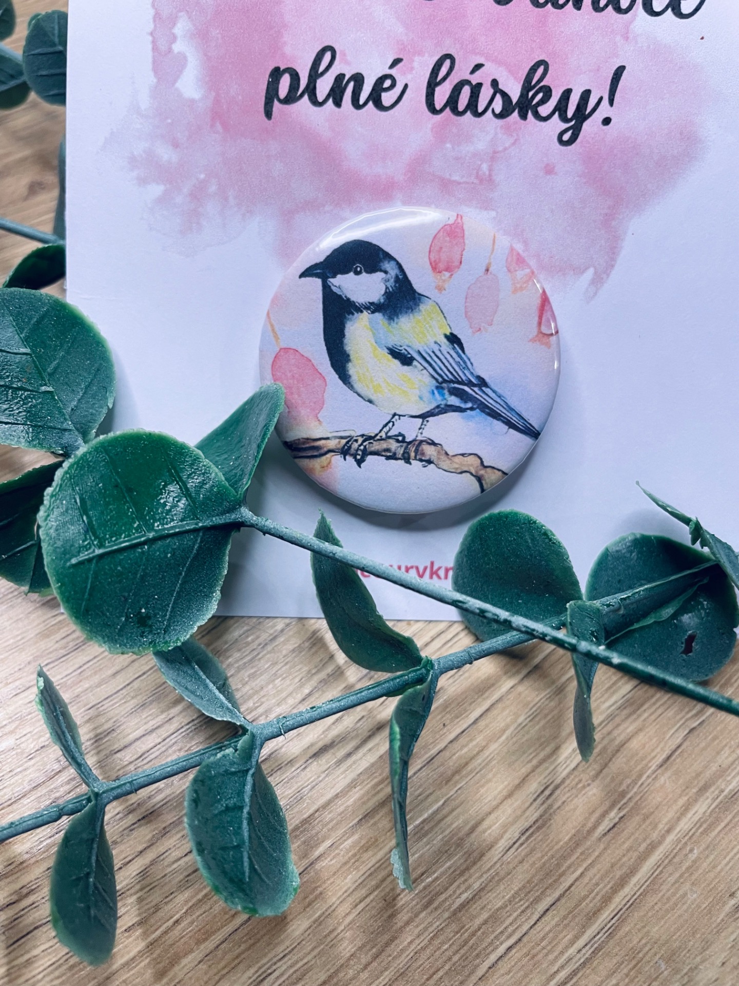 Placka se sýkorkou se hodí jako stylový talisman – pro štěstí, pro radost a pro milovníky ptáčků. Je to perfektní drobnost pro kolegyni, kamarádku nebo jako originální pozornost k balíčku.