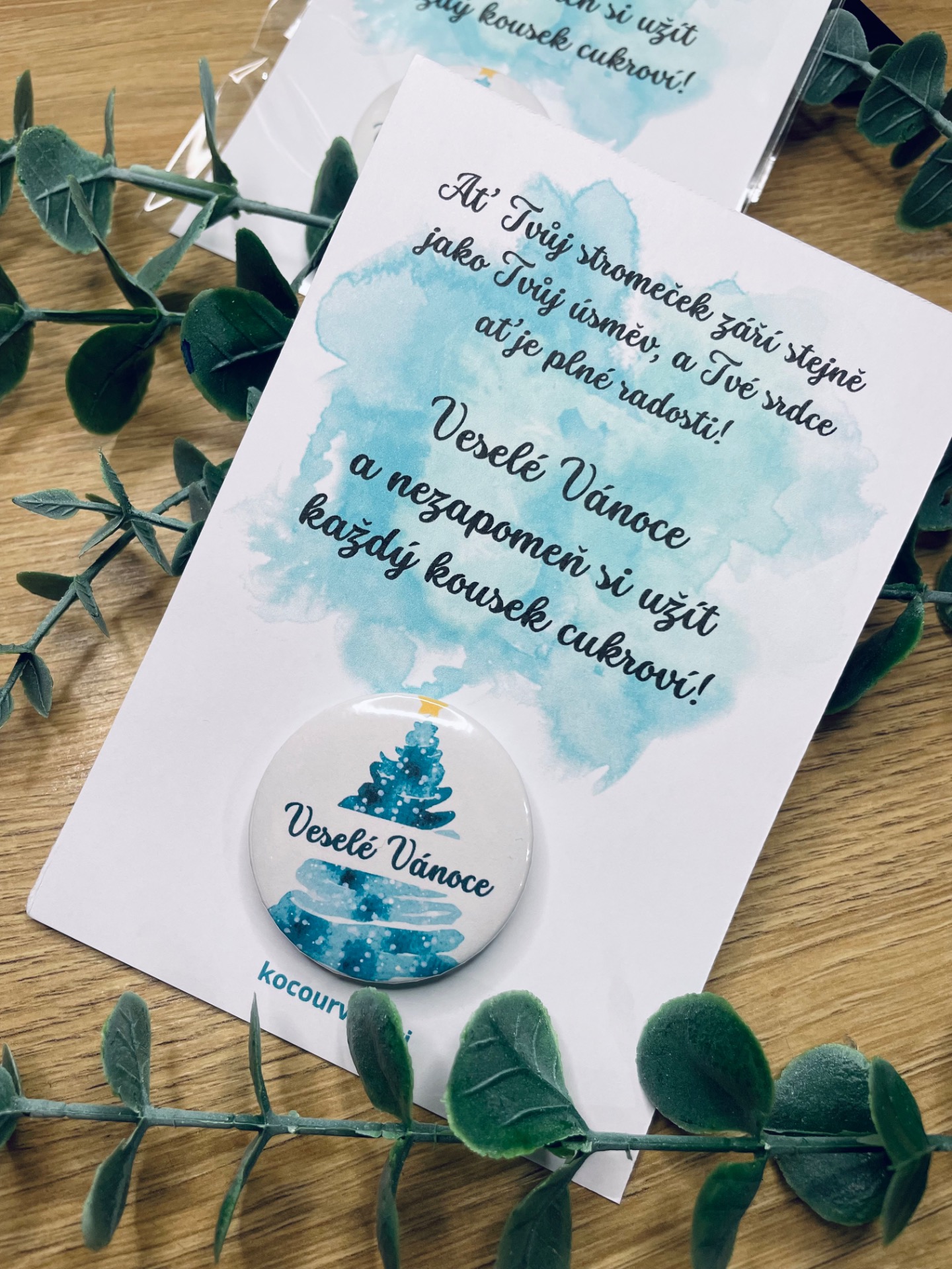 Placka se stromečkem se hodí jako stylový talisman – pro štěstí, pro radost a pro milovníky Vánoc. Je to perfektní drobnost pro kolegyni, kamarádku nebo jako originální pozornost k balíčku.